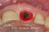 Patiente de 45 ans qui souffre d'une atteinte terminale d'une incisive. La dent est extraite, un implant est posé, l'incisive récupérée et installée sur l'implant le jour même ou dans la même séance.